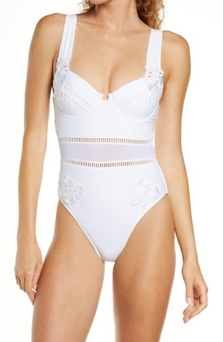River Island 786374 Lace Trim One-Piece Swimsuit US SZ 8 White