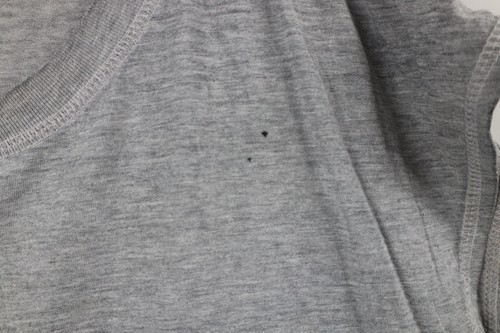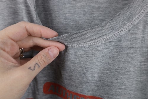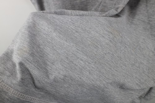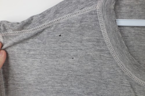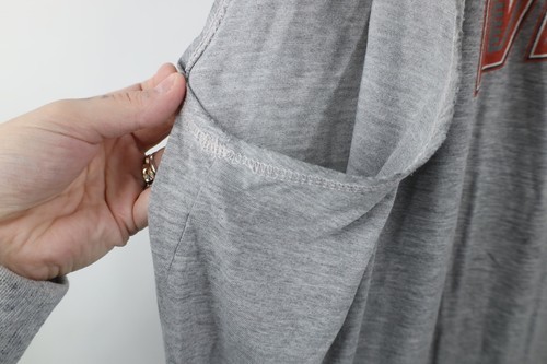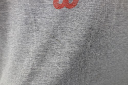 Holes front, shoulders, armpits, collar, back. Stains, bleach blemishes front. Collar, armpits discolored. Armpits unstiched. Graphics, color faded. Pilling