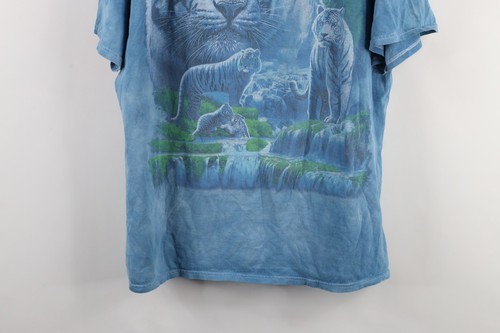 Vtg Y2K Liquid Blue Mens 2XL Faded Nature Tiger Acid Wash Short Sleeve T-Shirt