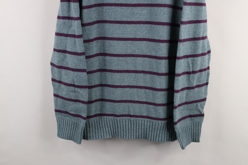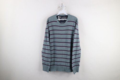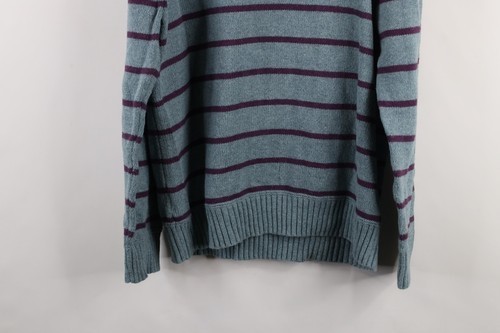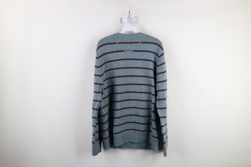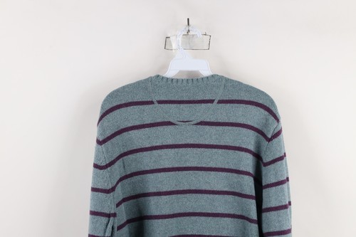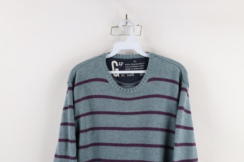 Vintage Gap Mens XL Heavyweight Wool Blend Knit Striped Crewneck Sweater Blue