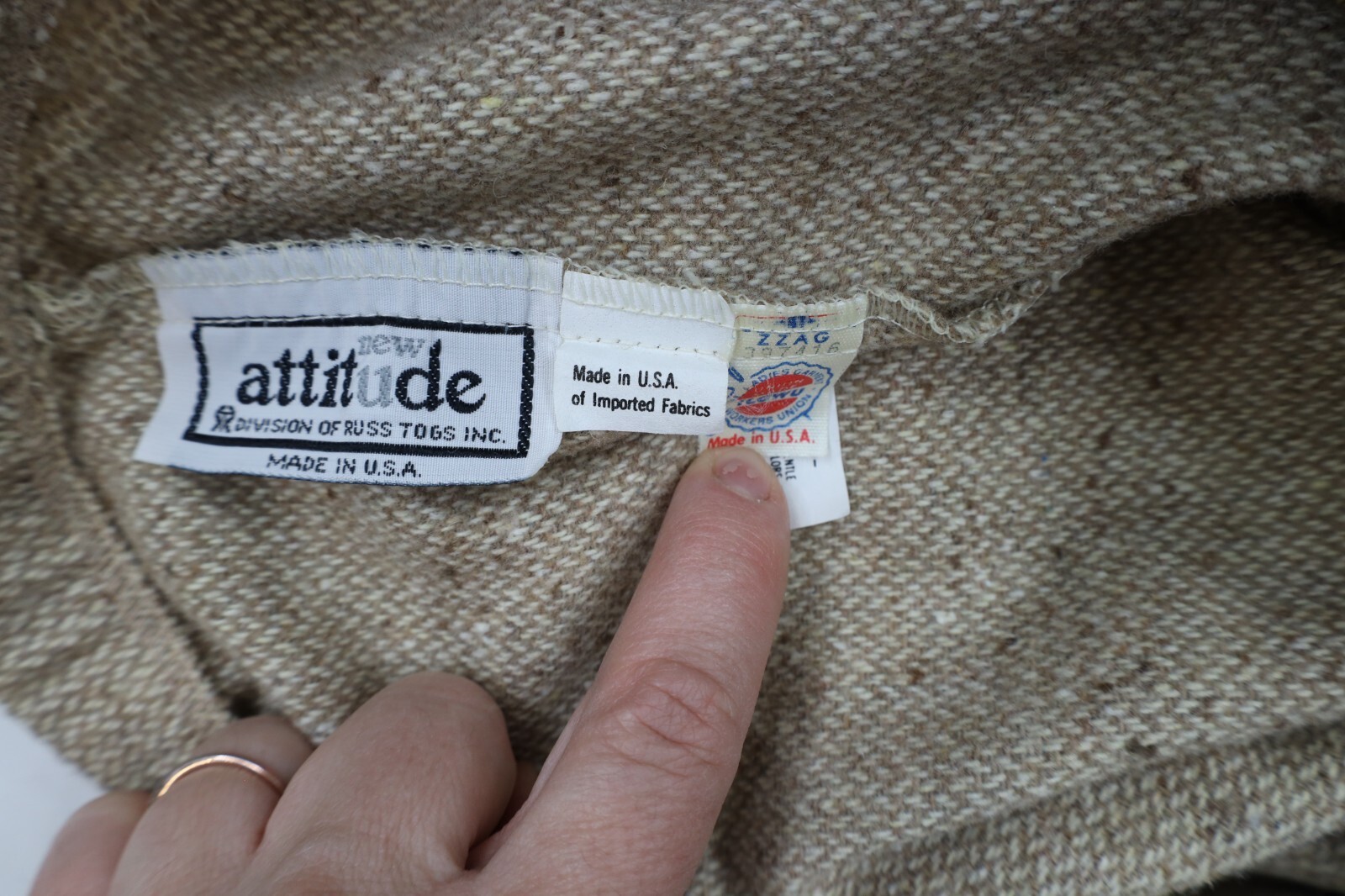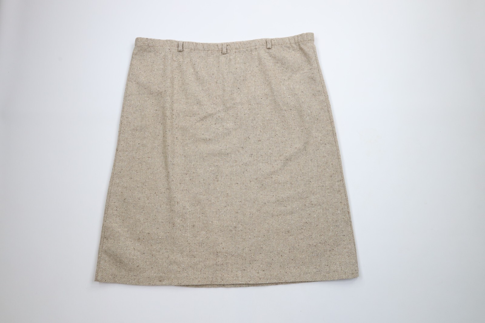 Vintage 70s Streetwear Womens Size 16 Rainbow Fleck Wool Tweed Skirt Beige USA