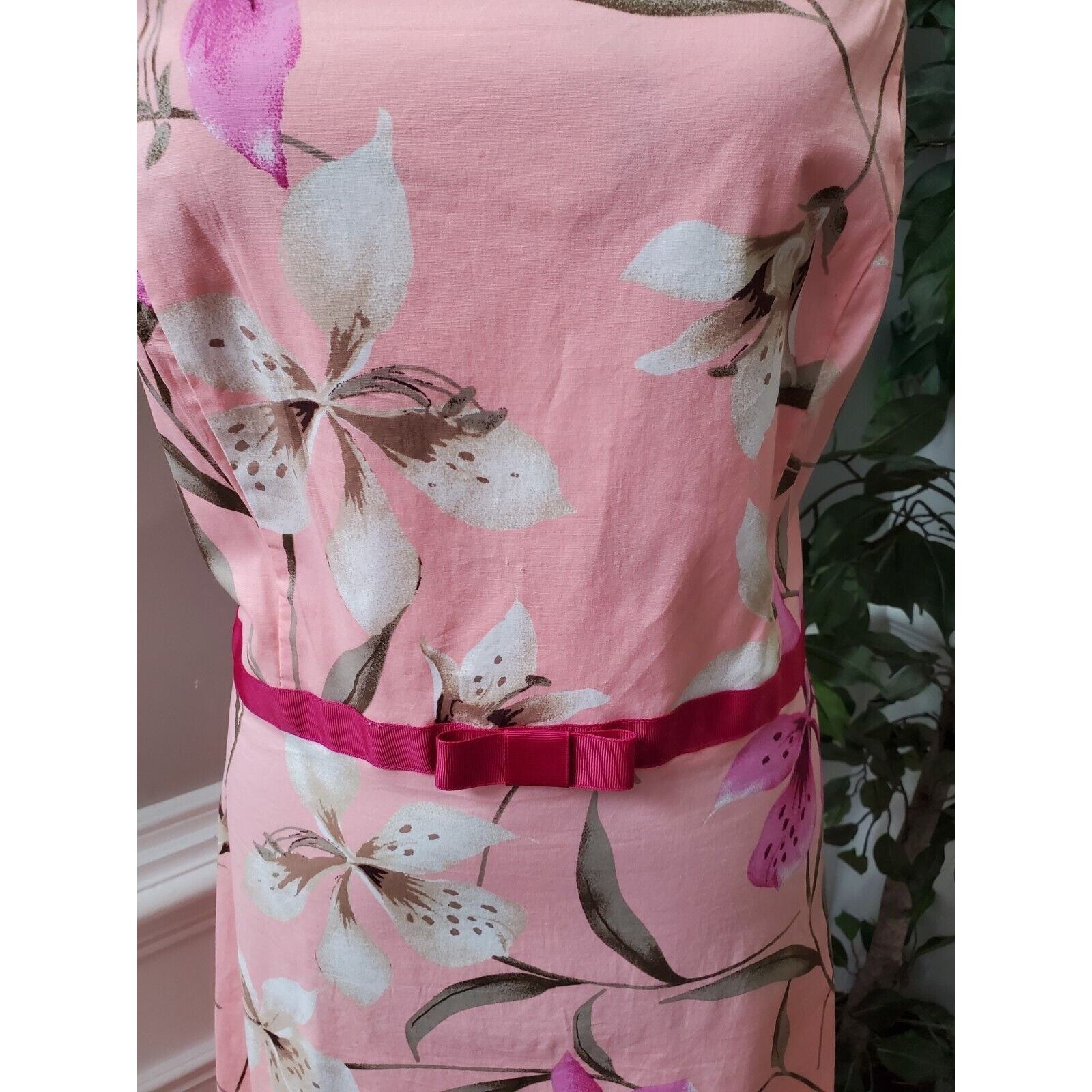 Pomponix Women's Pink Floral Cotton Sleeveless Casual Knee Length Dress Size 14