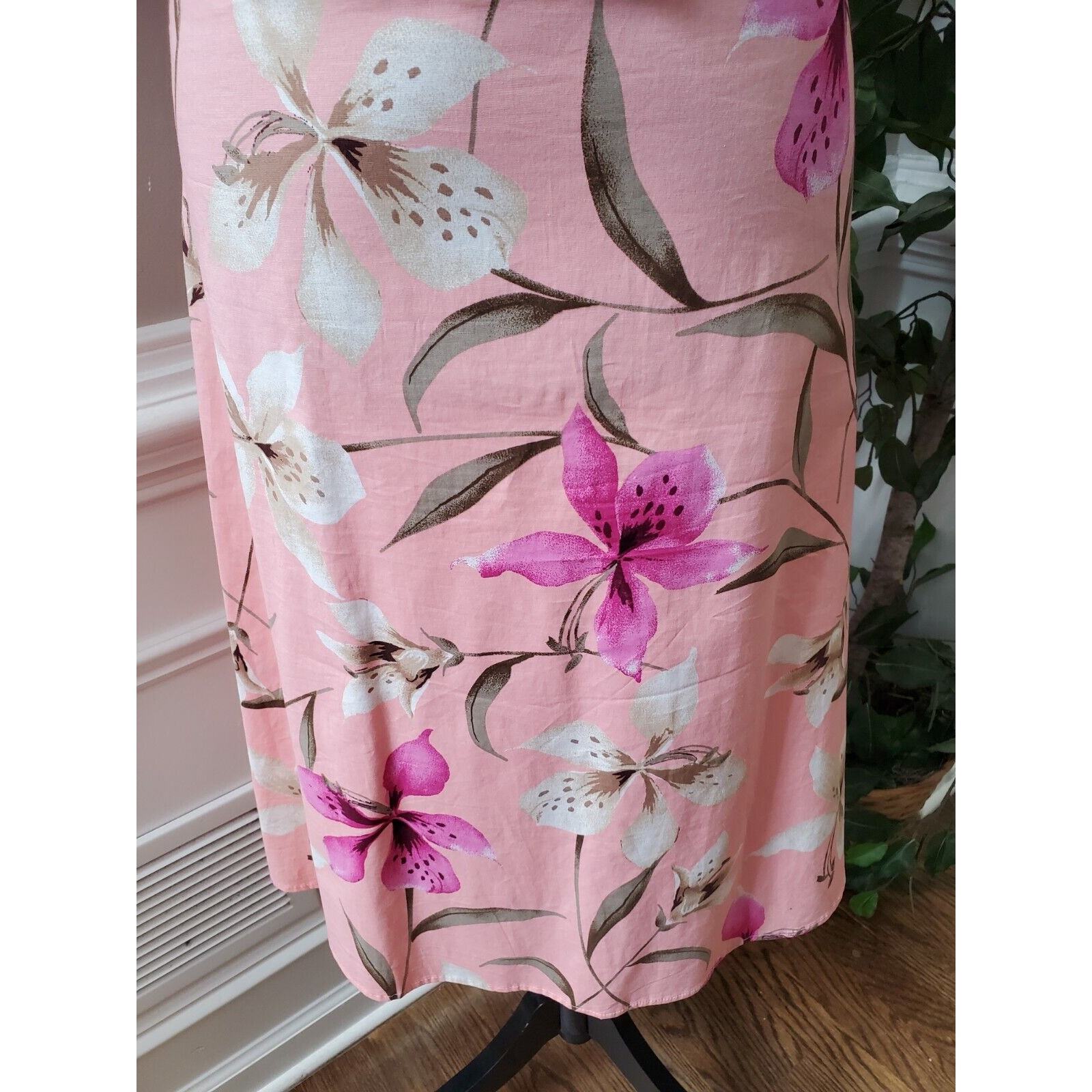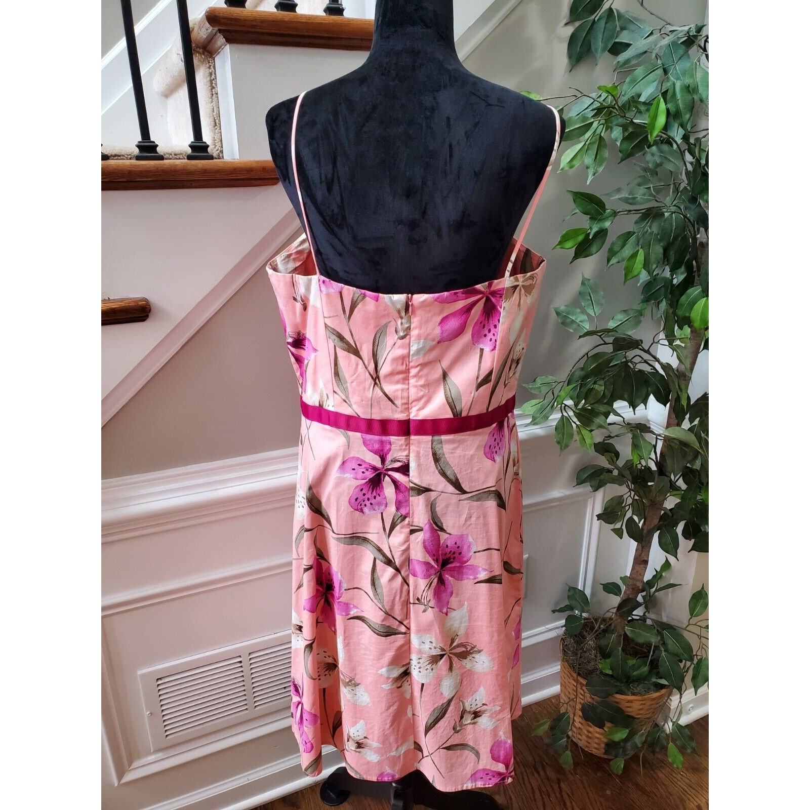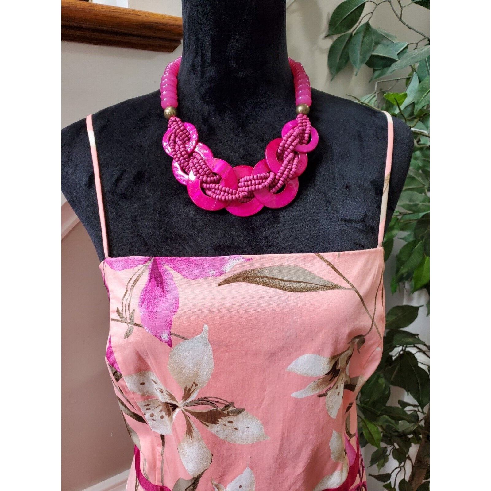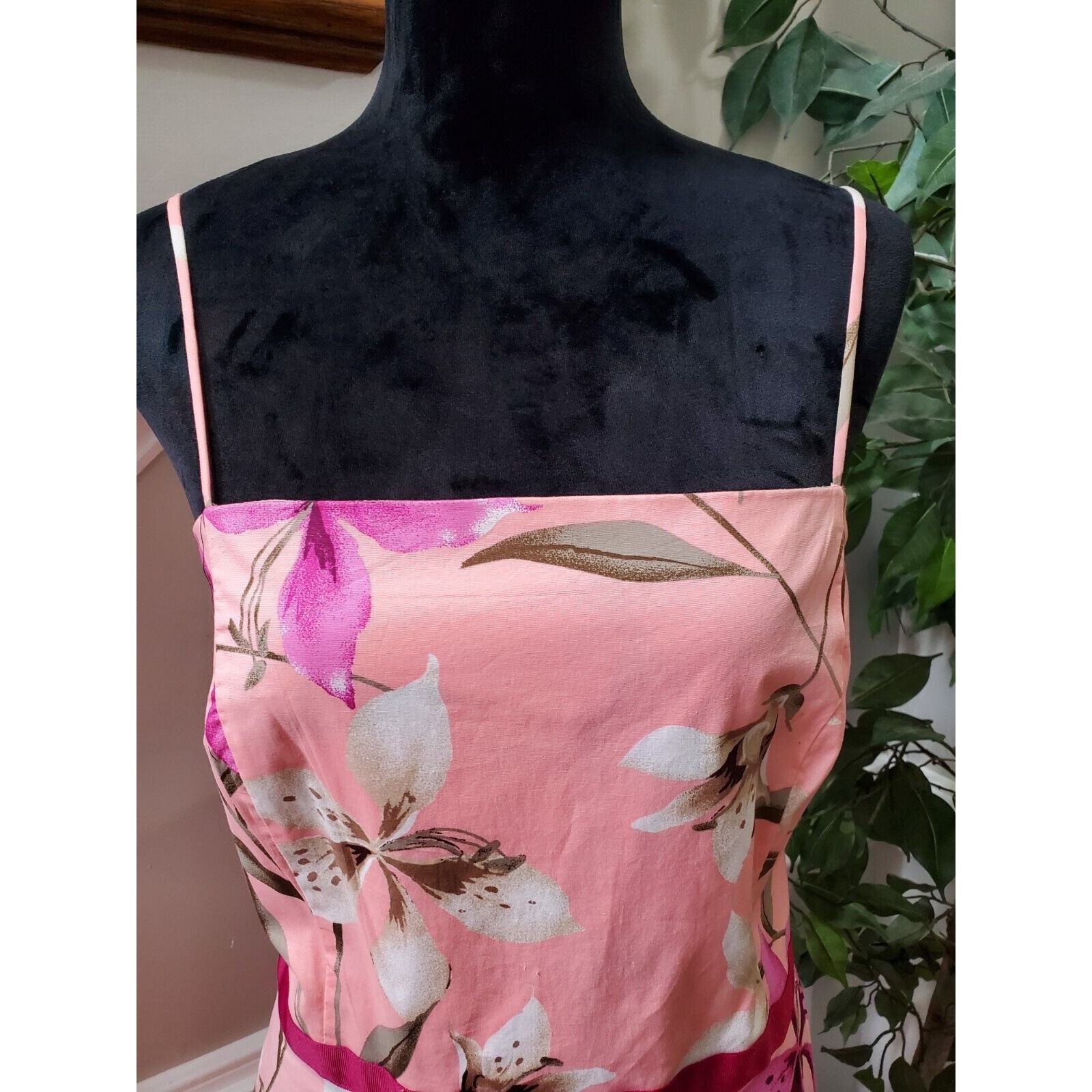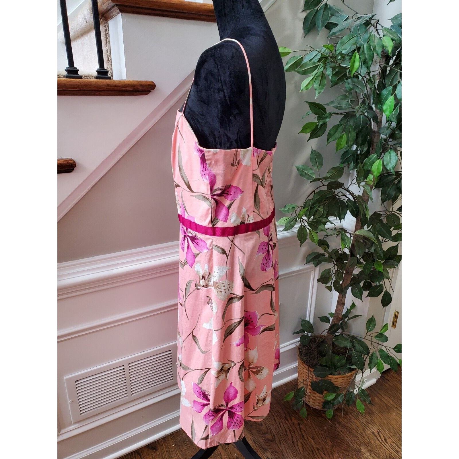 Pomponix Women's Pink Floral Cotton Sleeveless Casual Knee Length Dress Size 14.