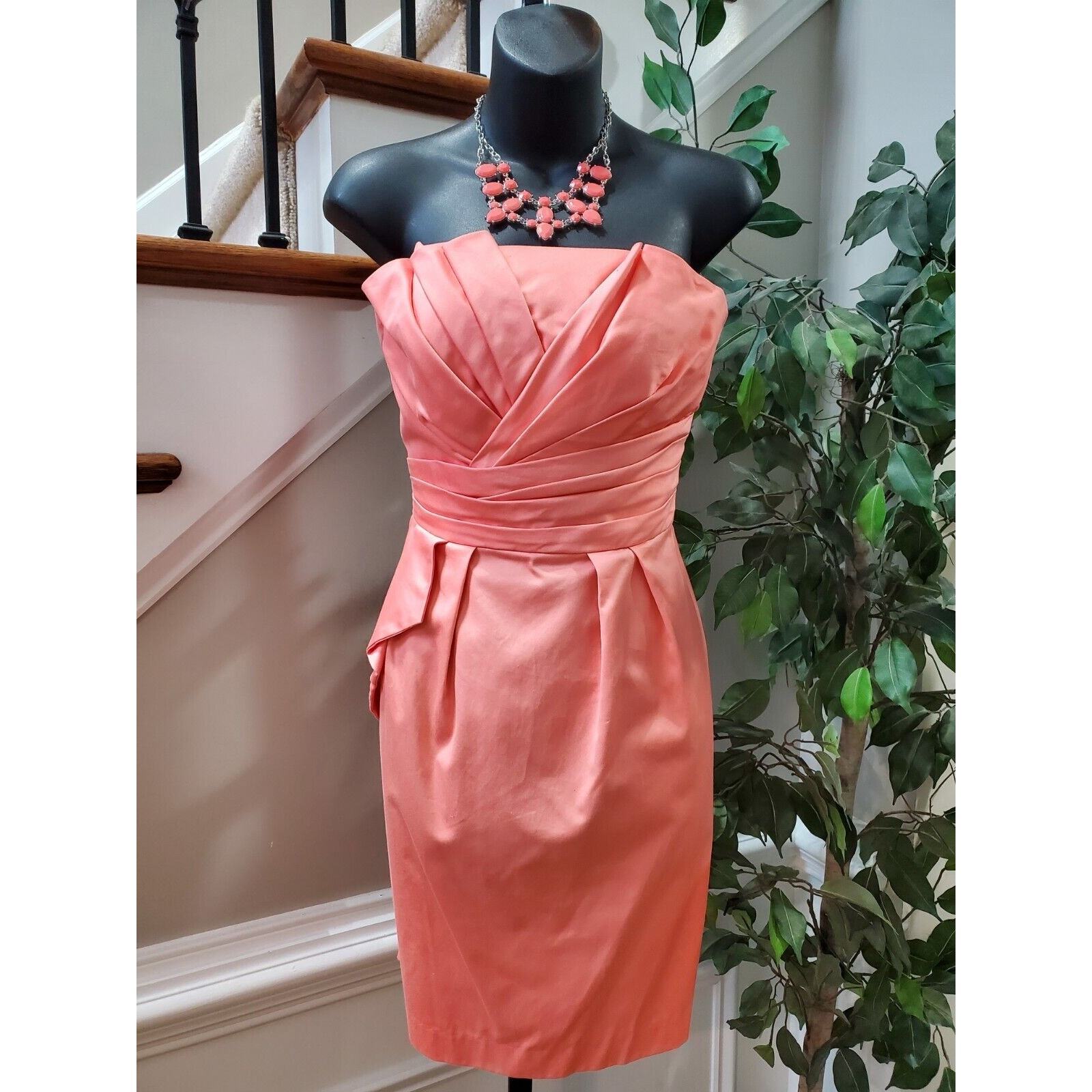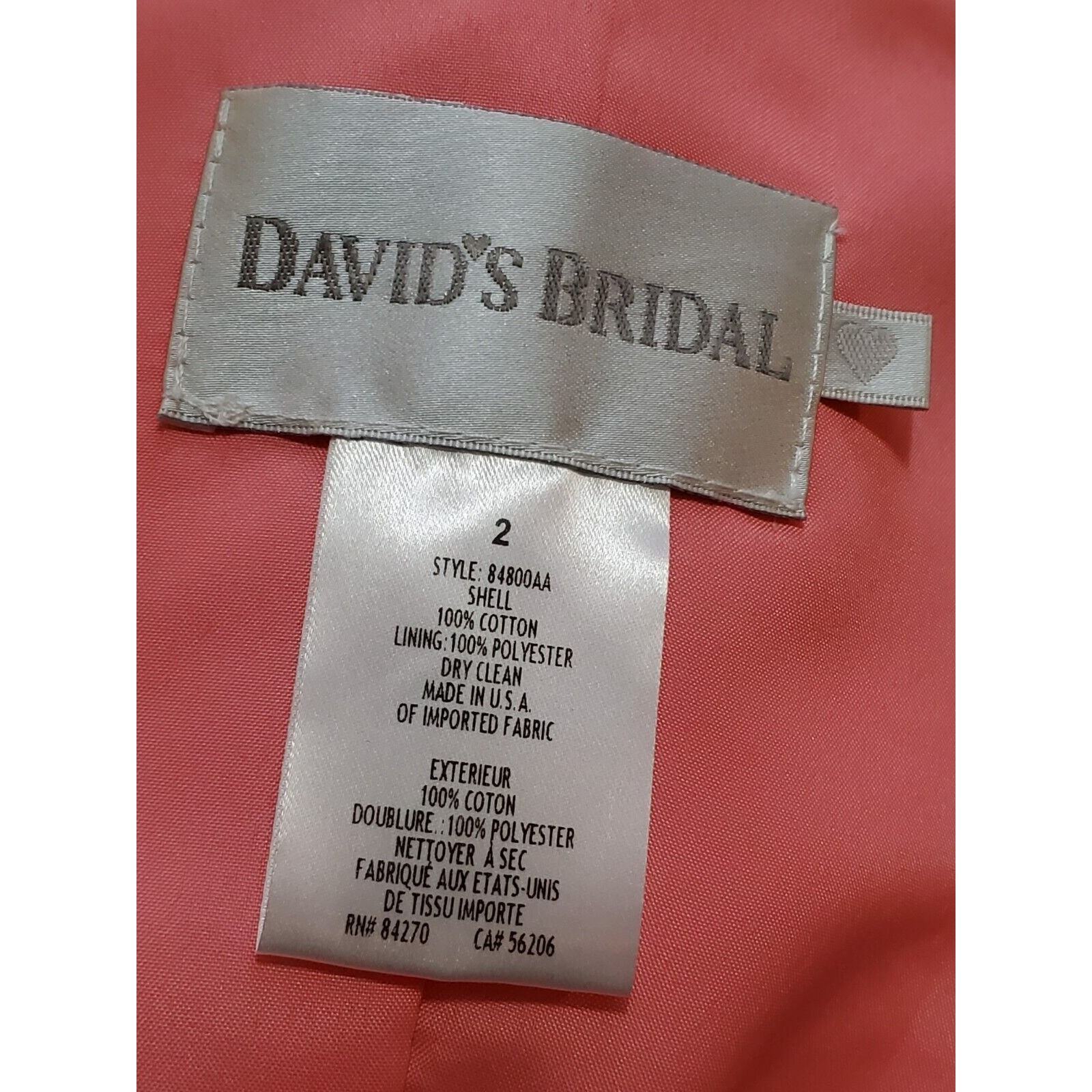 David's Bridal Women Pink 100% Cotton Off The Shoulder Knee Length Dress Size 2.