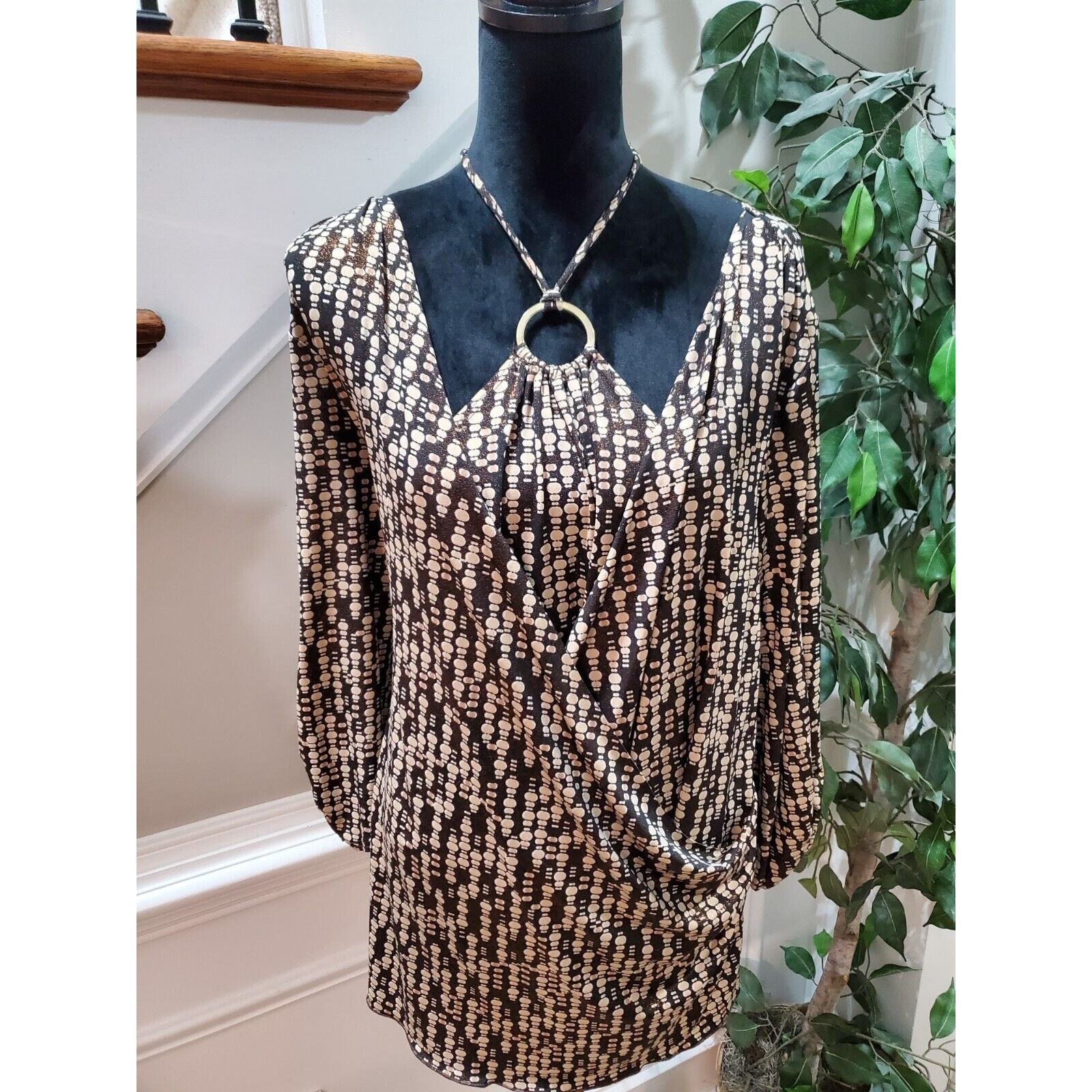 AGB Dress Women's Brown & Beige Polyester Long Sleeve Casual Top Blouse Size 18