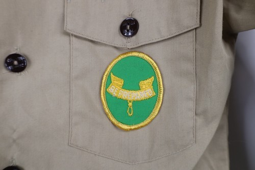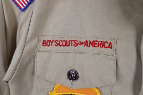 Vintage 70s Boy Scouts of America Boys 12 BSA Uniform Button Shirt w Patches USA