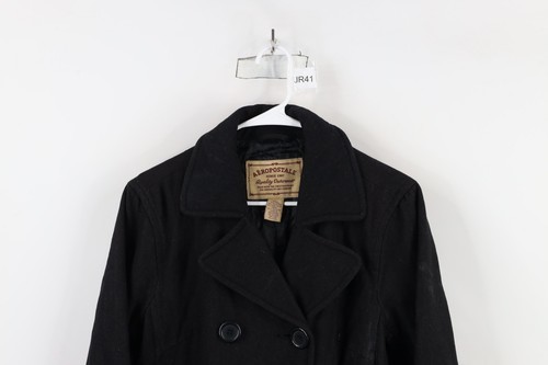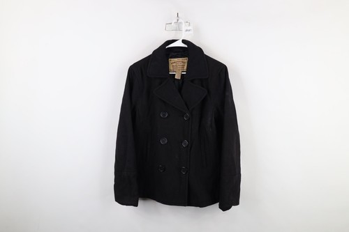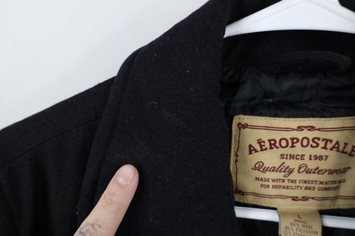 Vtg 90s Y2K Aeropostale Womens Large Thrashed Babydoll Wool Blend Peacoat Jacket