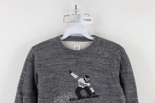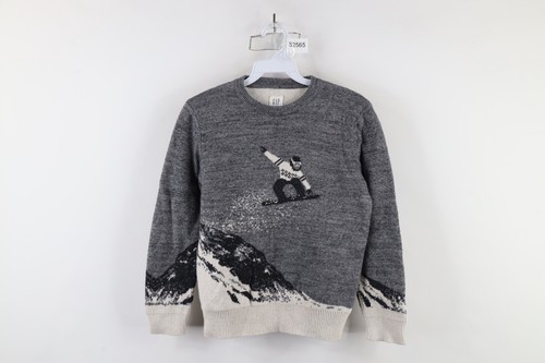 Vintage Gap Boys Medium All Over Print Snowboard Mountain Knit Crewneck Sweater
