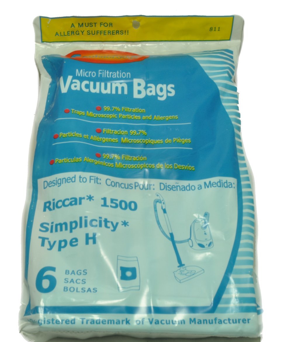 Riccar 1500 And Simplicity Type H Canister Vacuum Cleaner Microfiltratioin Bags
