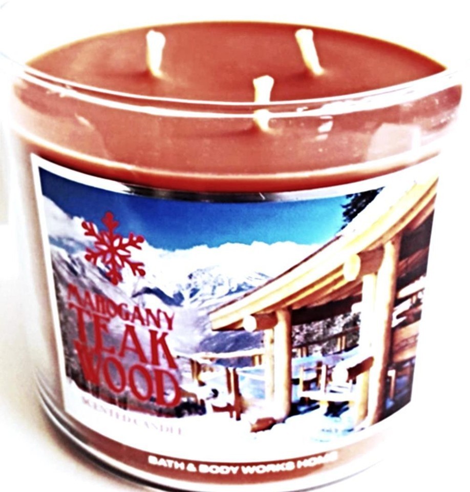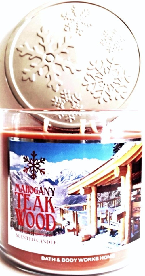 Bath & Body Works Mahogany Teakwood 3 Wick Candle 14.5 oz Snowflake Lid