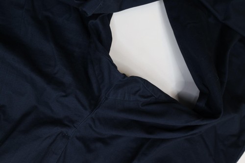 Blemishes bottom right leg and left side of waistband. Has color fade