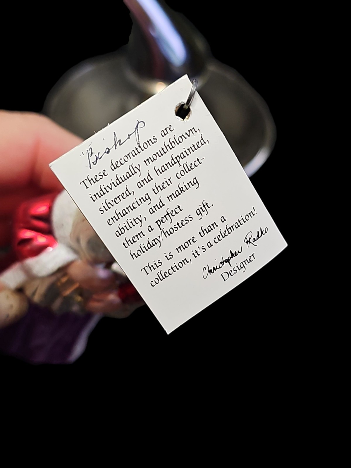 Each ornament was hand blown and hand painted by skilled artisans using old-world techniques in Europe, and all are part of Radko?s iconic glass Christmas line.