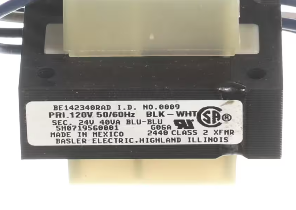 The Modine BE142340RAD, 0009, 5H0719560001 Transformer is a genuine OEM replacement part designed for reliable performance in commercial and industrial heating applications. Converting 120V input to 24V output with a 40VA power rating, this transformer ensures stable operation and compatibility with a wide range of Modine heater models.