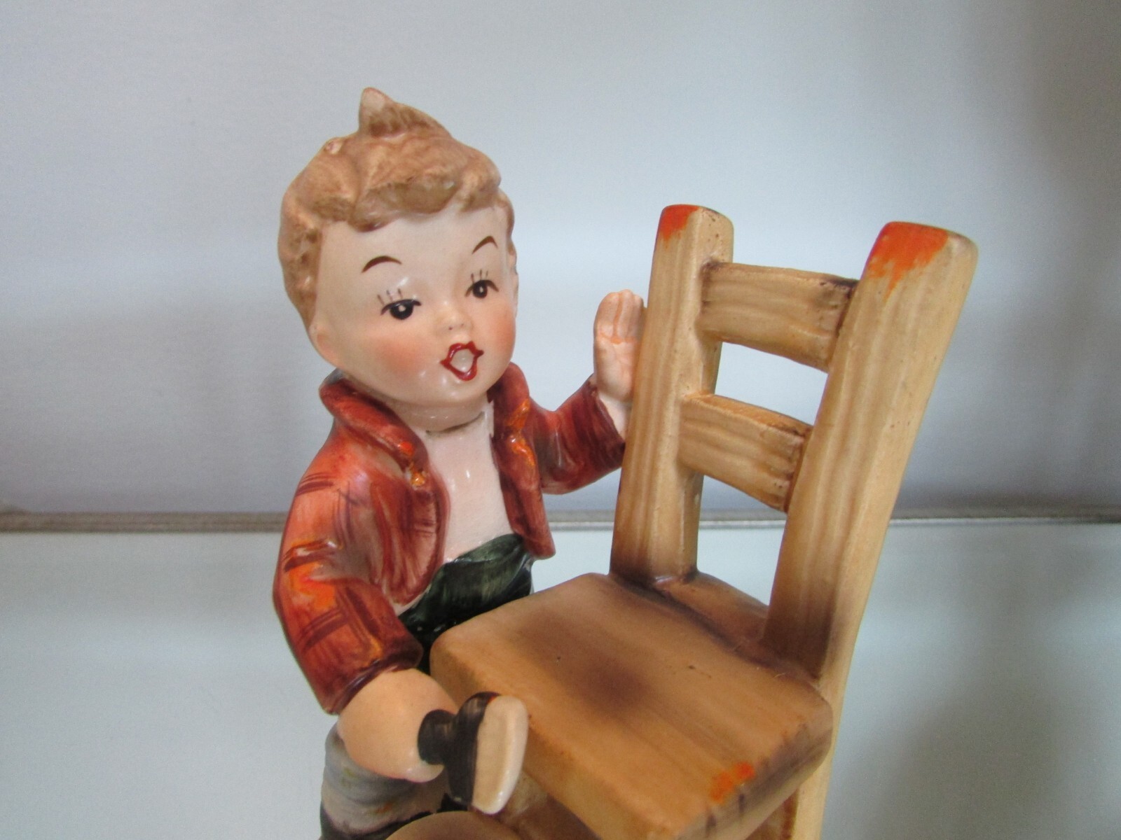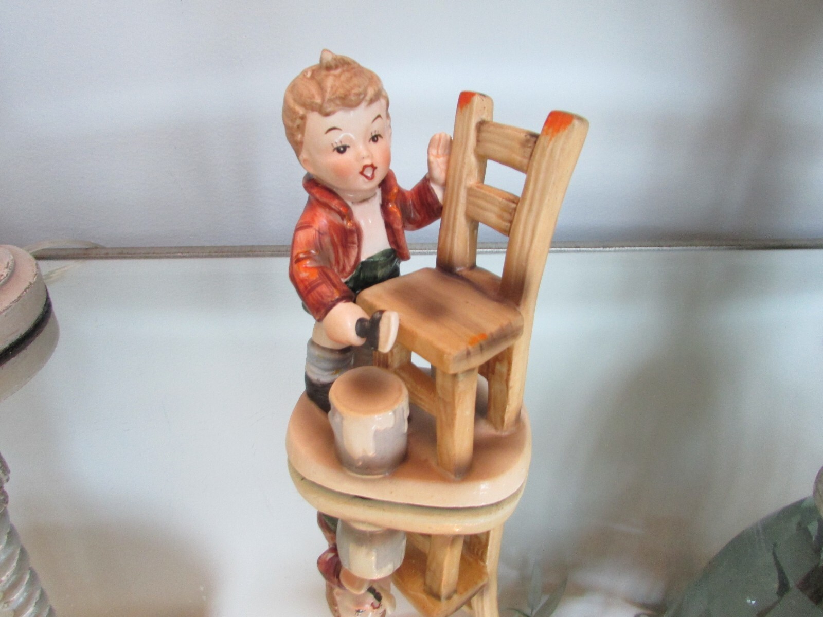 Vintage Napco Figurine Father's Helper Little Boy Painting #AH2626-B Japan 5"