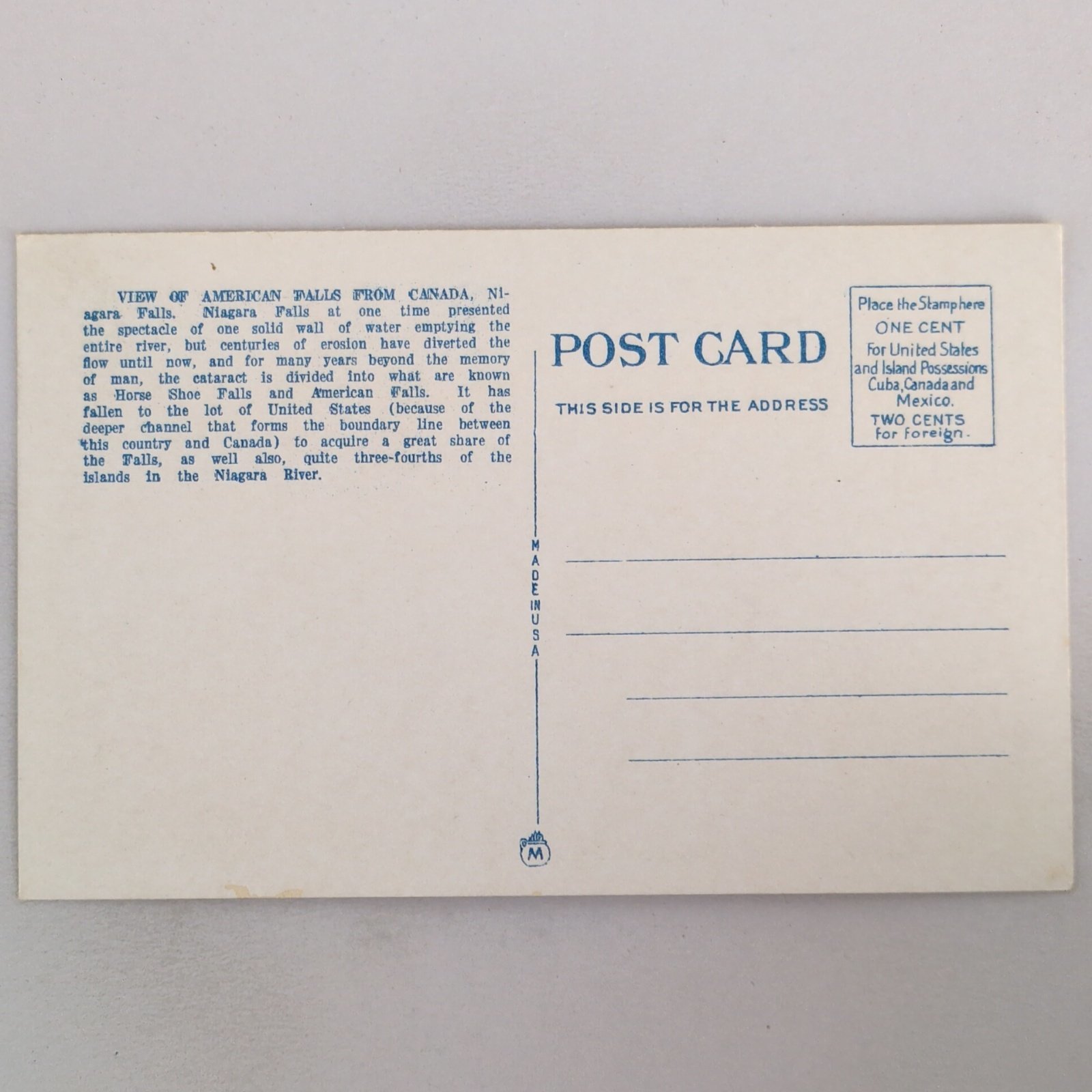 American Falls from Canada Niagara 1920s Postcard Steamship Unposted