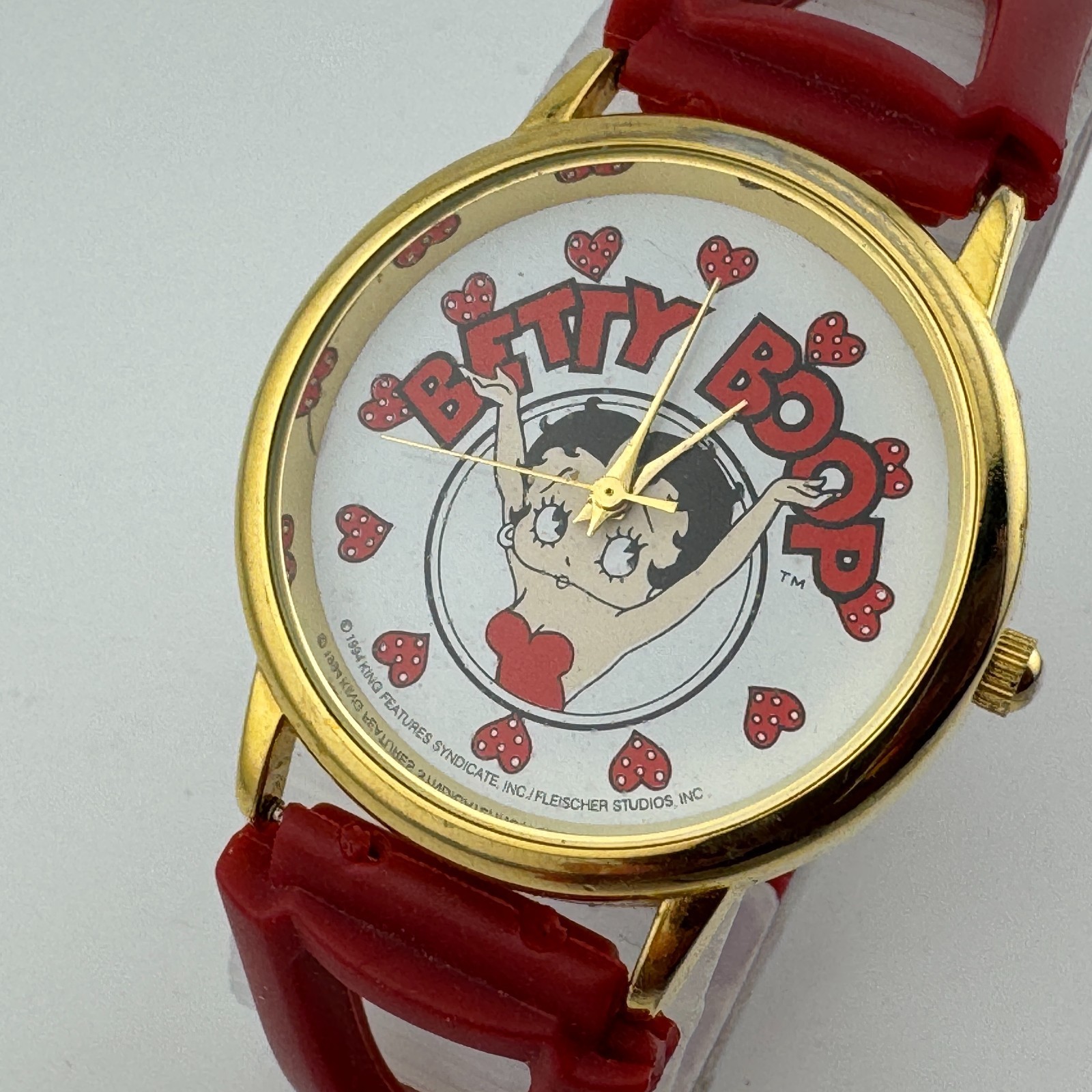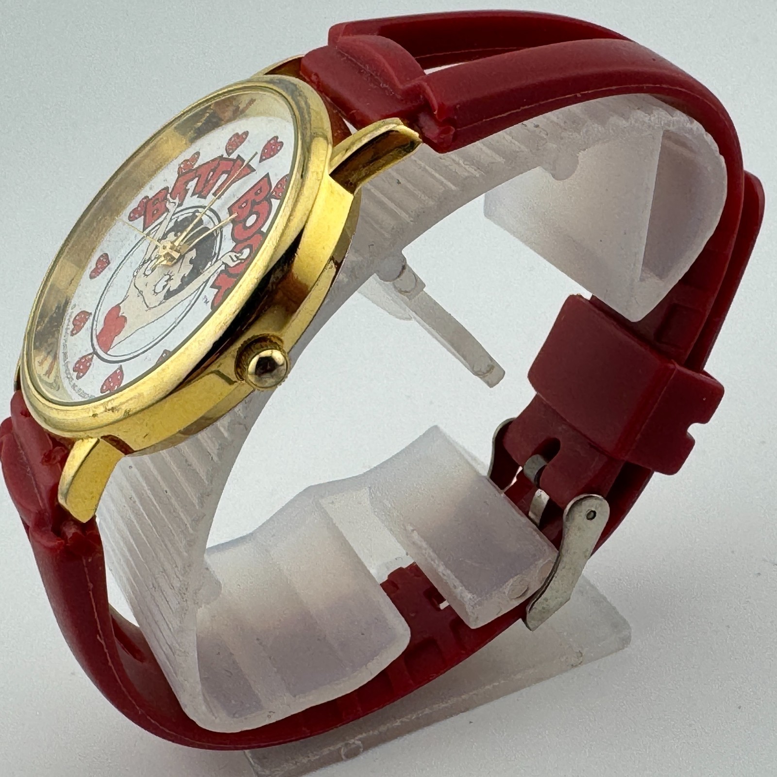 Vintage Betty Boop Quartz Watch Women Gold Tone Rubber Band Analog New Battery