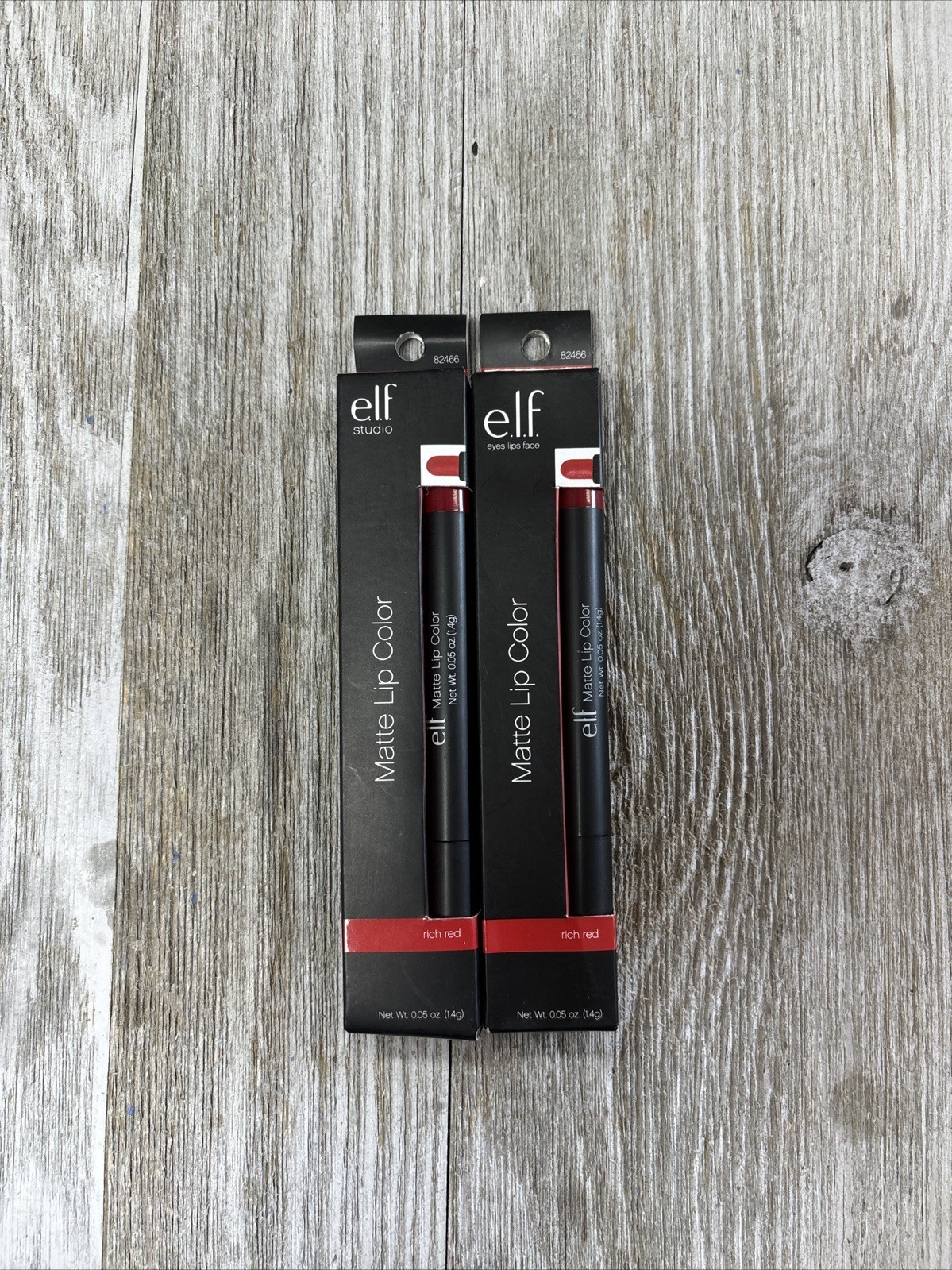 2pk E.L.F. NEW NIP Rich Red Matte Lip Color #82466 Sharpener Included .05 Oz. Condition is New with box. Shipped with USPS Priority Mail.