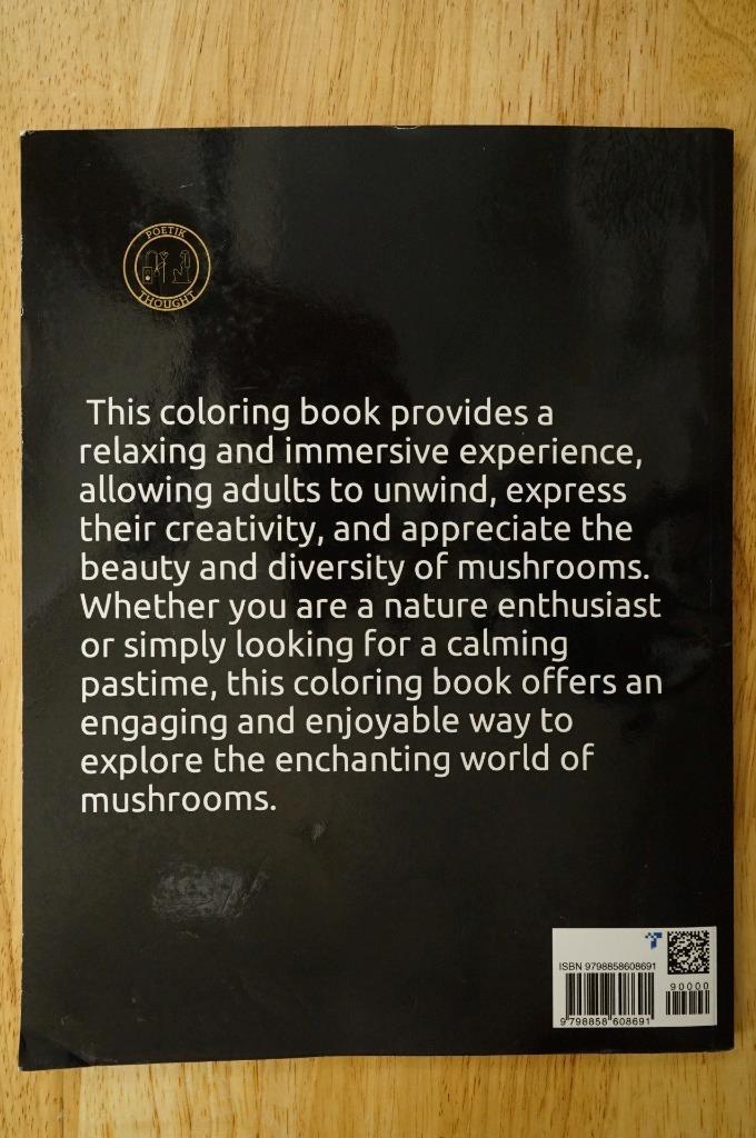 Mushroom Coloring Book for Adults 80+ Coloring Pages of Mushrooms Fungi Animals, softcover. Printed in Troutdale, Oregon. No smoke or pet odors.