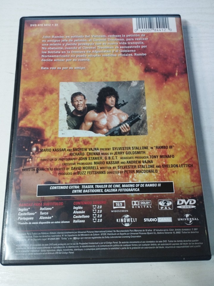 Rambo III Sylvester Stallone - DVD Español Ingles Italiano Aleman Region 2 Am