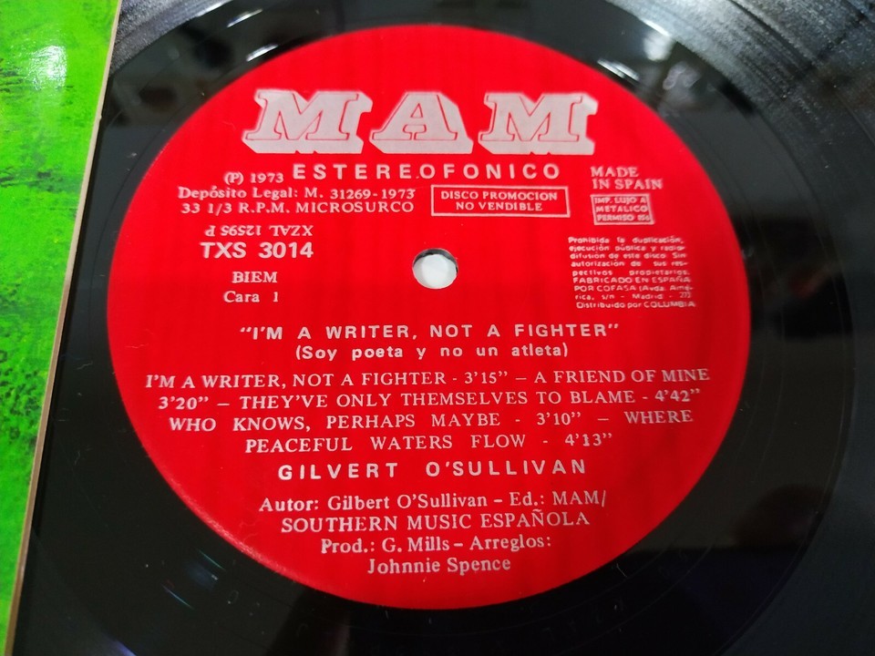 Gilbert OSullivan Im a Writer Not a Fighter 1973 - LP Vinilo 12" VG/VG - 2T