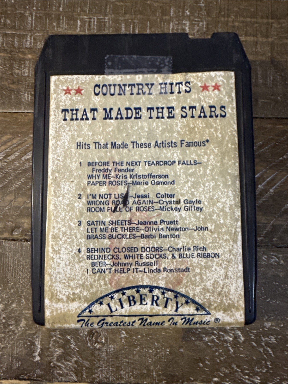 The "Country Hits That Made The Stars 8 Track Tape" features various country artists and their hit songs, all recorded in the 8-track cartridge format. This collection of country music classics is perfect for music enthusiasts looking to experience the iconic sounds of the genre in a nostalgic and unique way. With a focus on country music, this 8-track tape offers a glimpse into the stars of the genre and their timeless hits.