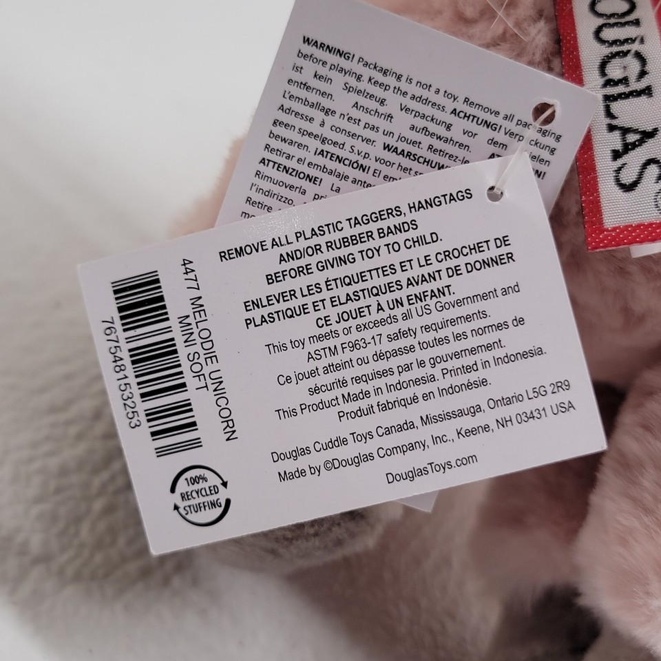 Mini Melodie Plush Soft Pink Unicorn Stuffed Animal - Douglas Cuddle Toys #4477. Images show actual plush that will ship.