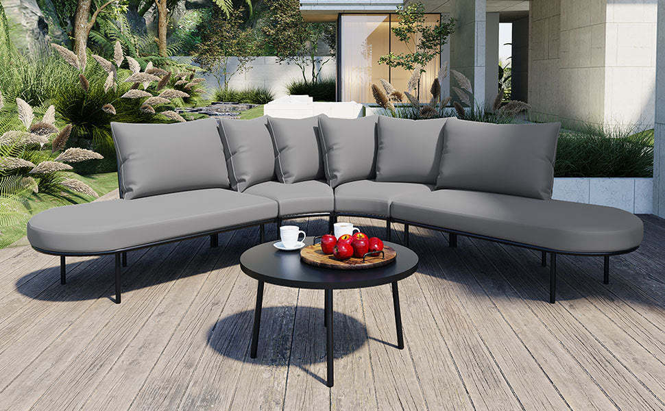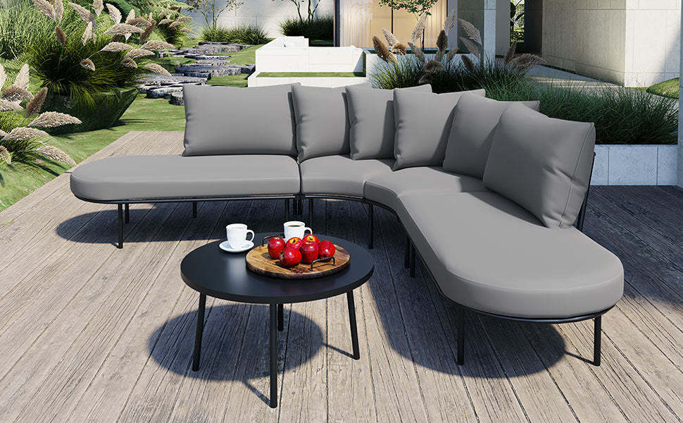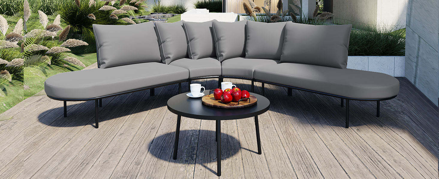GO Patio Half-Moon Curved Outdoor 6-Person Sofa Set w/ Coffee Table