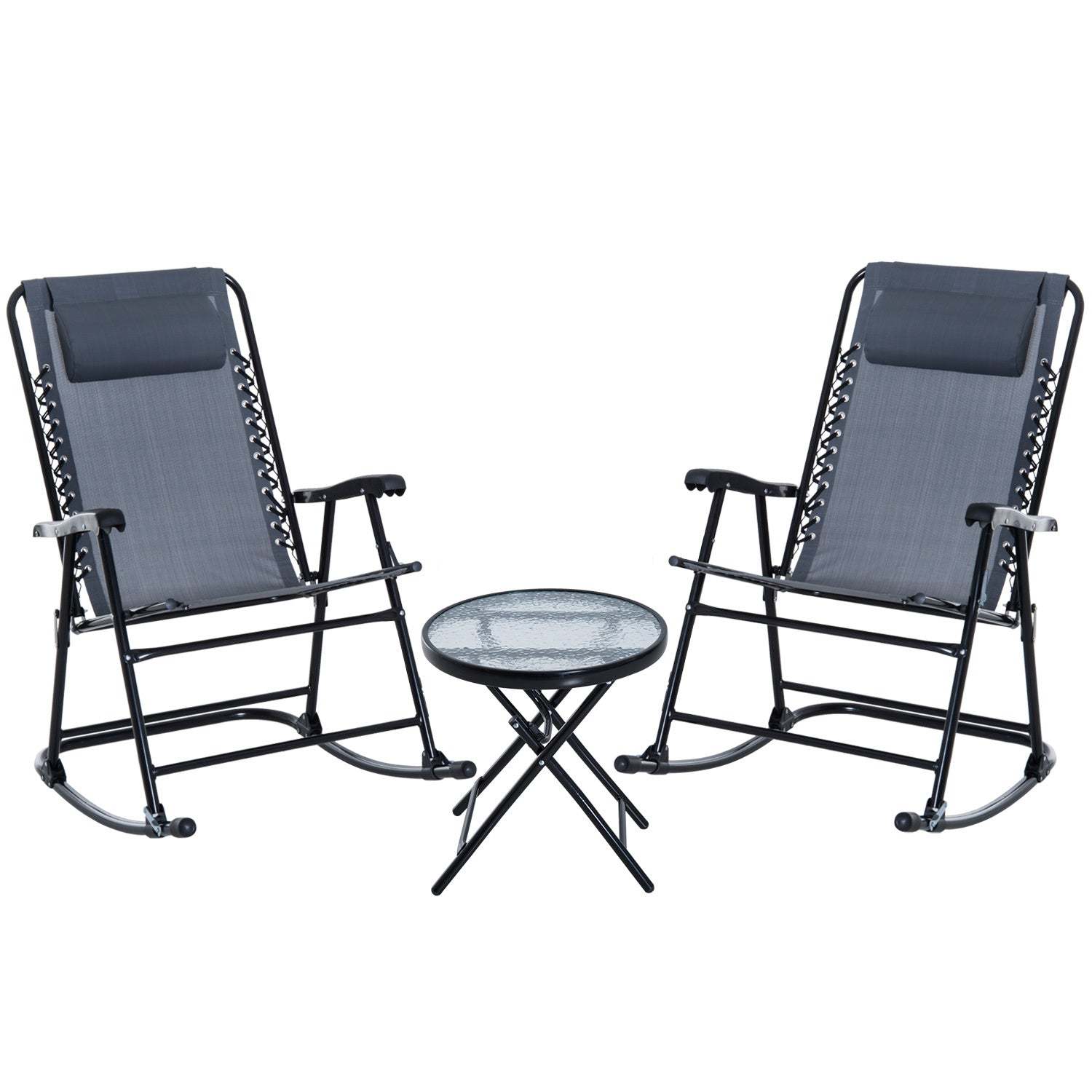 Outsunny 3-Piece Outdoor Rocking Bistro Set - Patio Folding Grey