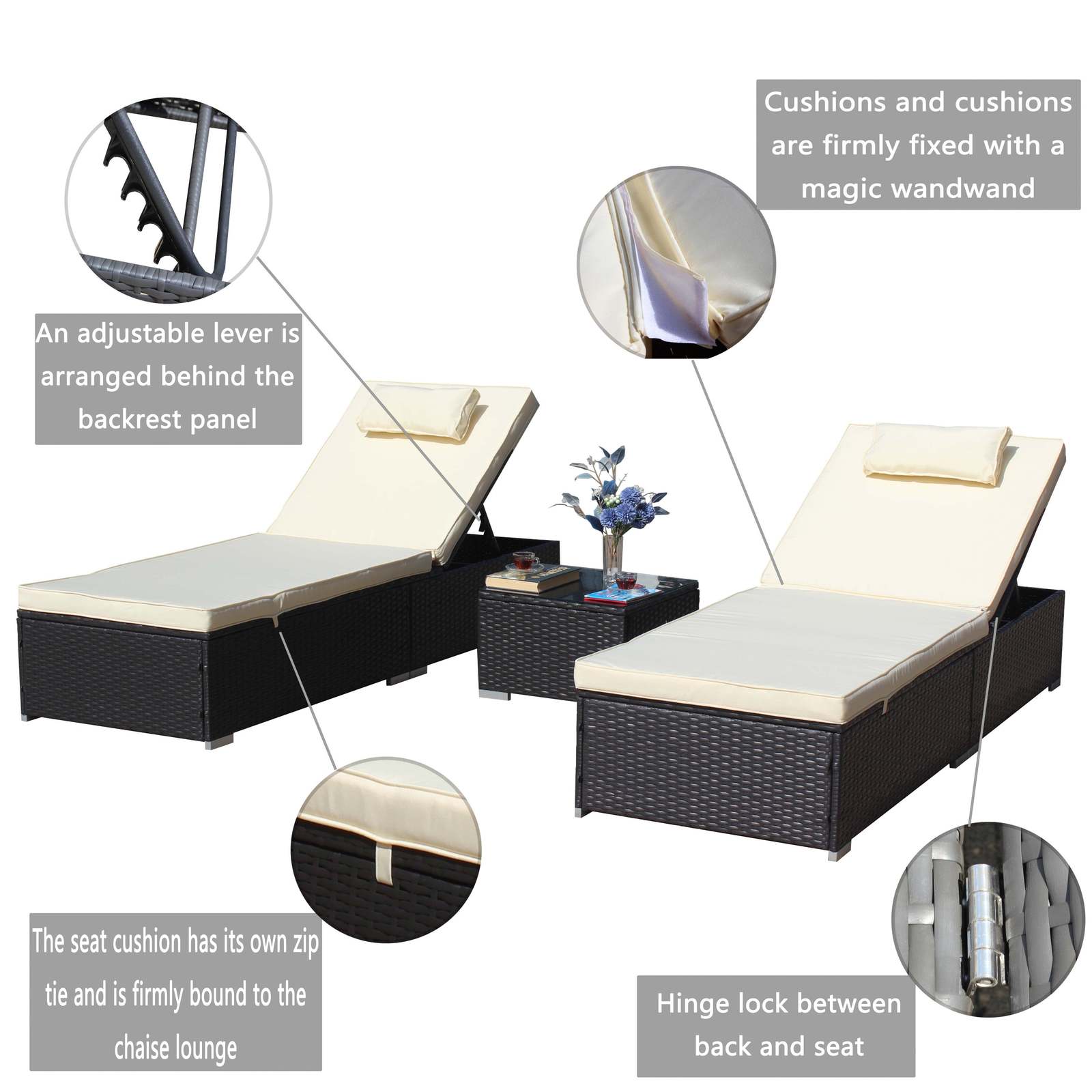 ?The chaise lounge come with soft sponge padded cushion and head pillow for extra comfort and relaxation.