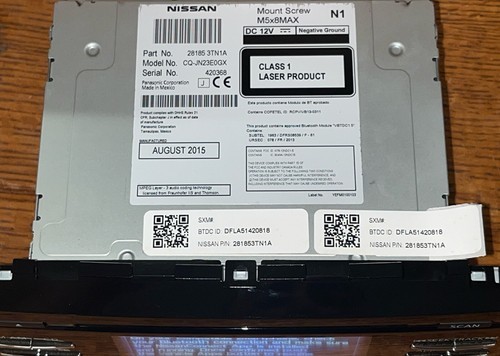 New Nissan Altima AM/FM/CD/Bluetooth Radio 28185-3TN1A CD Deck W/O Sat