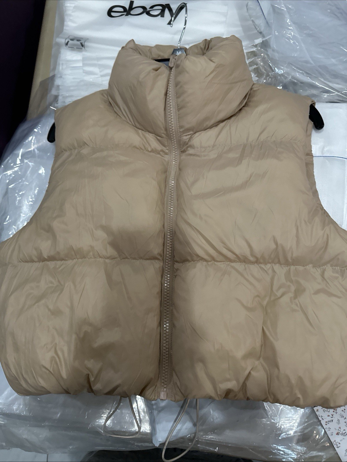 Automet CROPPED PUFFER VEST Size Small Sleeveless Padded Jacket Gilet Tan