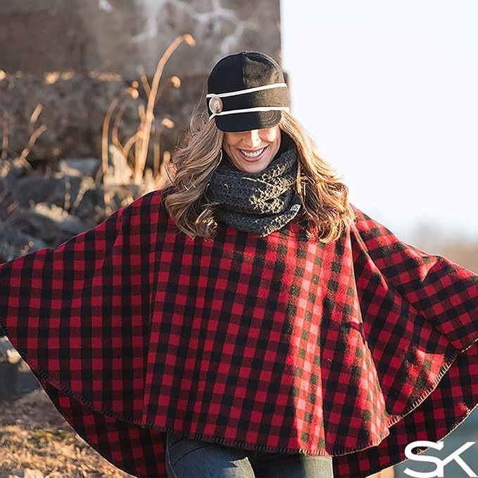 Stormy Kromer Huron Poncho - Cold Weather Women’s Outdoor Shawl Red/Black