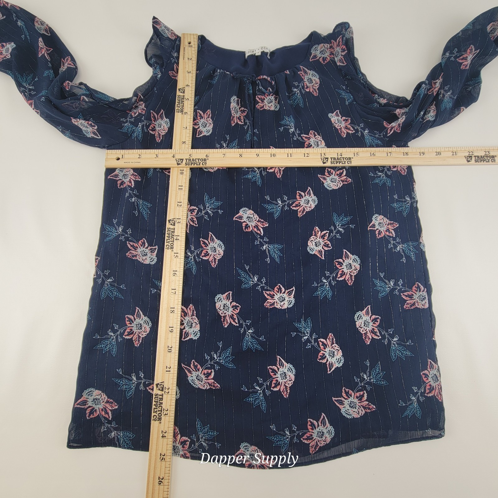Violet & Claire Womens Blouse Small Blue Long Sleeve Cold Shoulder Lined Top