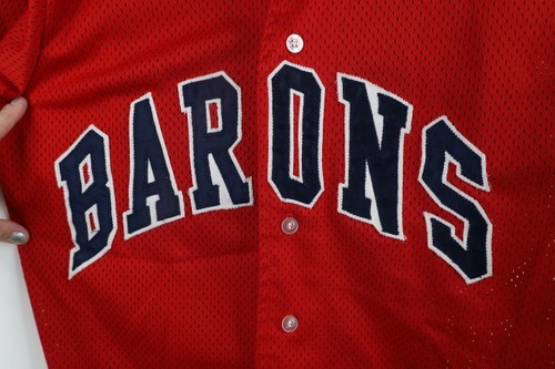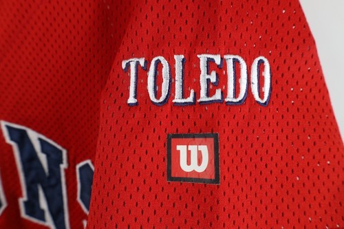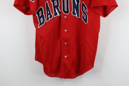 Vintage 90s Mens Medium Spell Out Toledo Barons Mesh Baseball Jersey Red USA