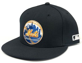 New York Mets MLB OC Sports Round Elite Black Hat Cap Men's Flat Fitted 7 3/8