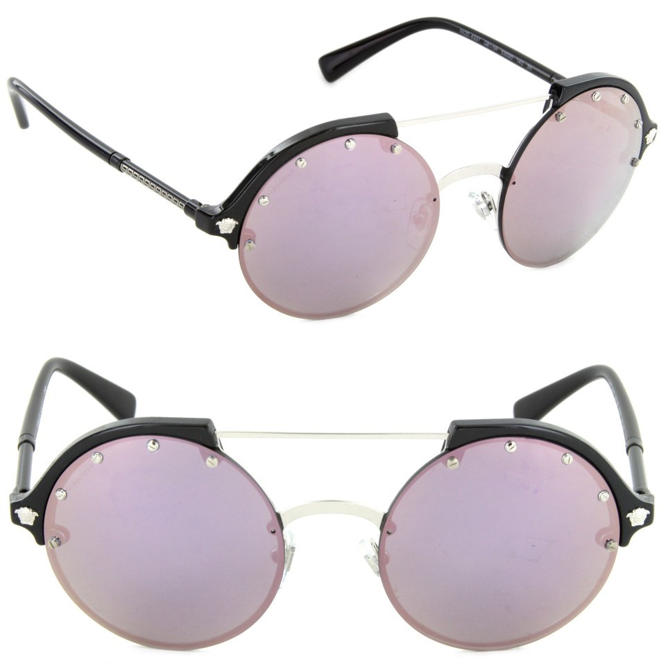 Versace VE4337-GB1/5R Round Sunglasses Silver/Black/Dark Grey Mirror Pink Lens