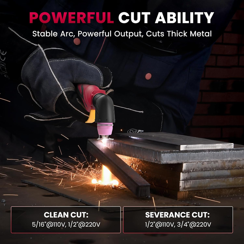 [Powerful Cutting Ability] Dual voltage 110/220V good for home, workshop and hardware shop use. Professional performance 1/2?clean cuts on Iron, Steel aluminum and copper with Inverter IGBT Technology. Very powerful for DIY and heavy duty project. The Maximum cutting thickness is recommended to 12mm@35A 110V 50PSI; 18mm@50A 220V 65PSI. Dry and compressed air is required. Power breaker up to 40A@110V 35A; Up to 30A@220V 50A.