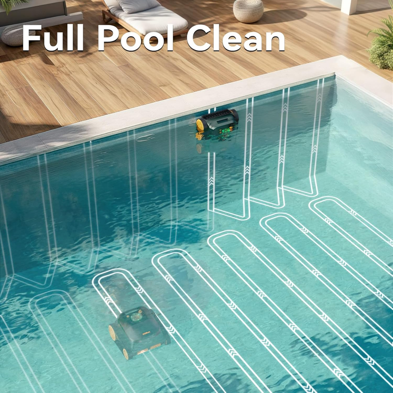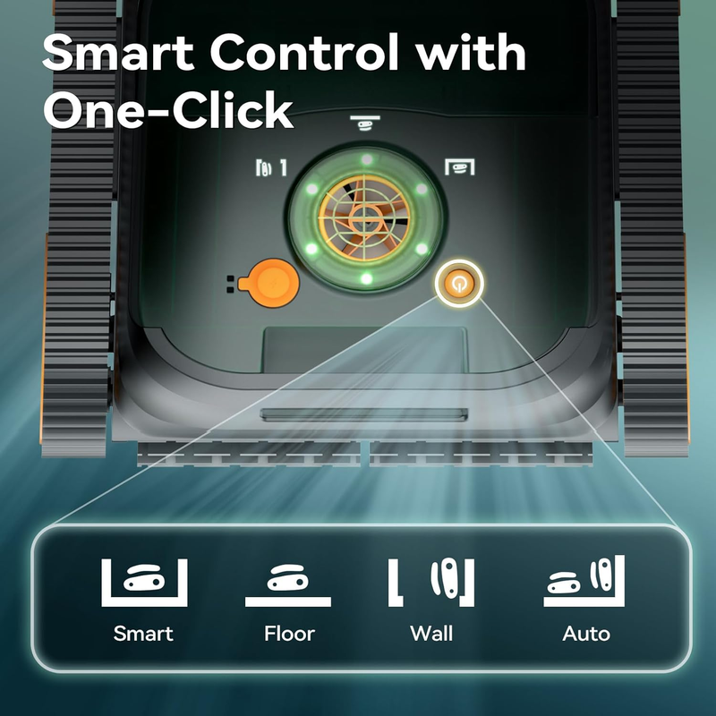 Advanced Smart Navigation Full Pool Coverage: Upgraded intelligent navigation ensures full pool coverage, including floors, walls, and waterlines. Four cleaning modes allow you to customize your cleaning plan for efficient daily maintenance