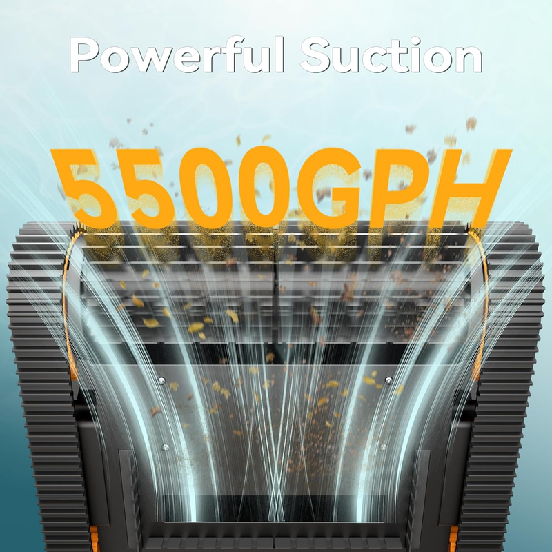 Exceptional Cleaning Power: This automatic pool cleaner delivers up to 5550GPH of strong suction, effortlessly picking up dirt, debris, and leaf from pool floors and walls for a consistently clean swimming environment