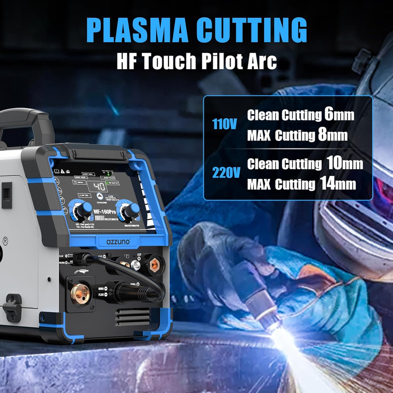 ?5-IN-1 Multifuntion Welder Machine?: This AZZUNO 5-in-1 welding machine supports FLUX MIG, GAS MIG, PLASMA CUTTING, HF TIG, and STICK welding, offering a comprehensive solution for a wide range of welding and cutting tasks, making it ideal for professionals and DIY enthusiasts alike.