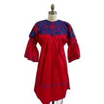 Vtg 70s Embroidered Peasant Dress Red Boho Cottagecore Festival S/M