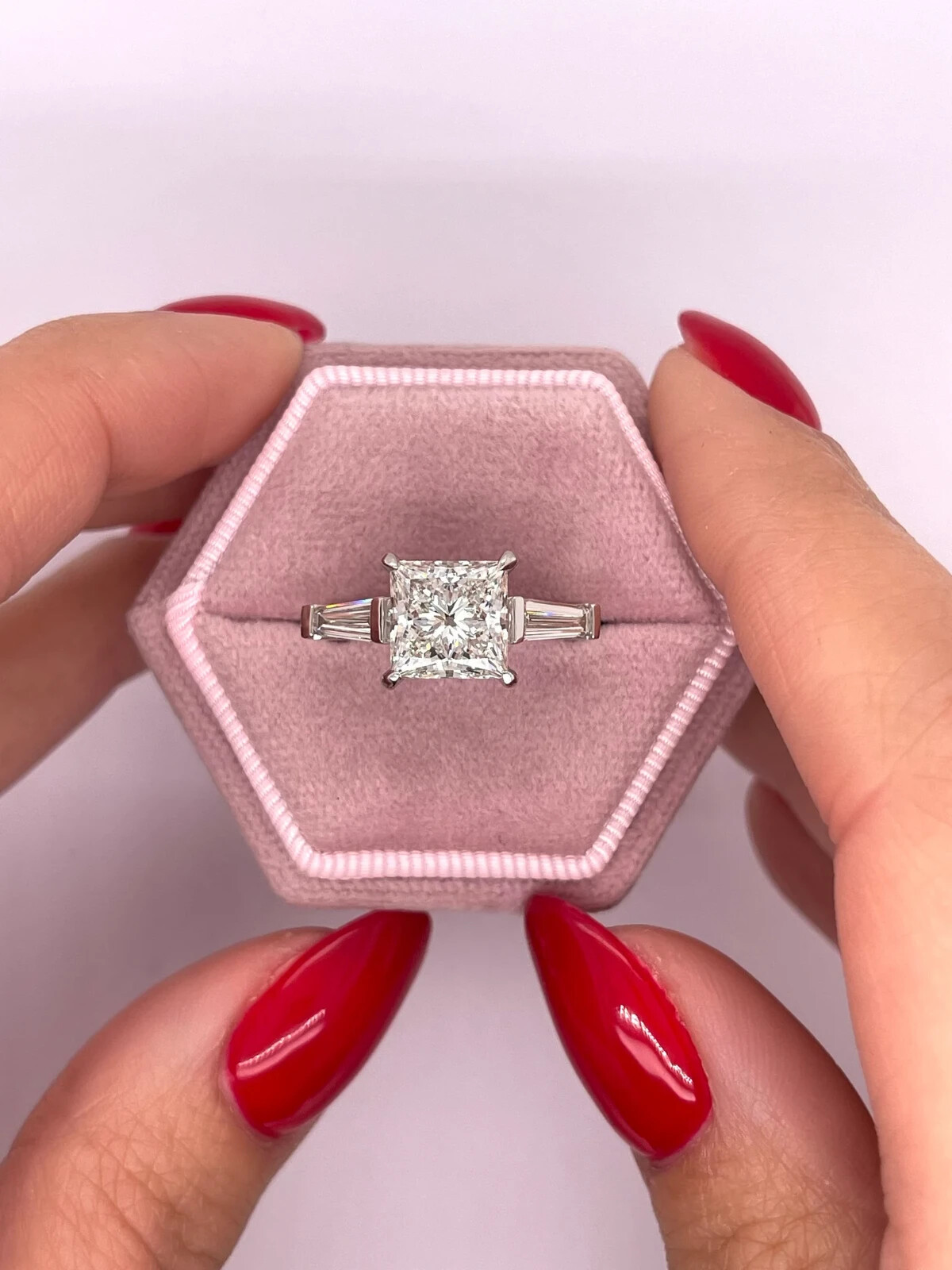Three Stone Princess Cut Lab Grown 3.60 Ct IGI CERTIFIED F / VS1 Clarity Ring