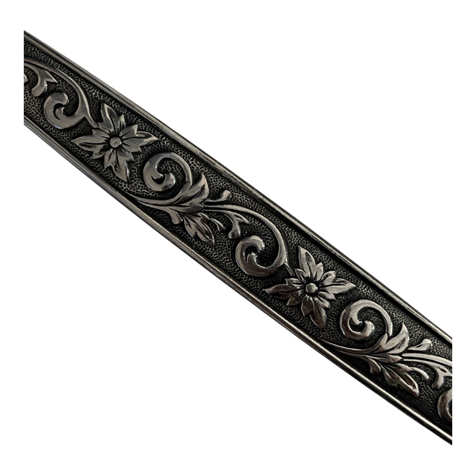 This vintage serving fork was crafted in Japan from durable stainless steel. It features an ornate floral scroll design on the handle with a textured background, giving it a mid-century elegance. Originally part of a salad serving set, this fork stands beautifully on its own as a functional utensil or collectible piece of flatware.