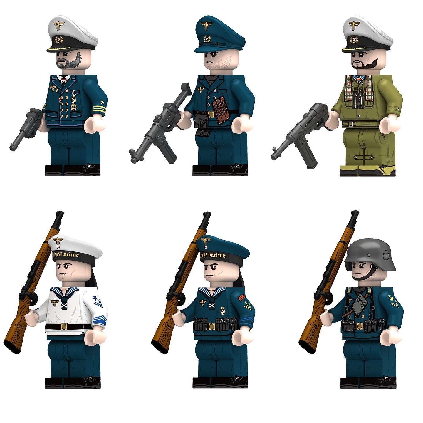 6pcs WW2 German Navy U-boat Commander Obermaat Gefreiter Minifigures Minifigs