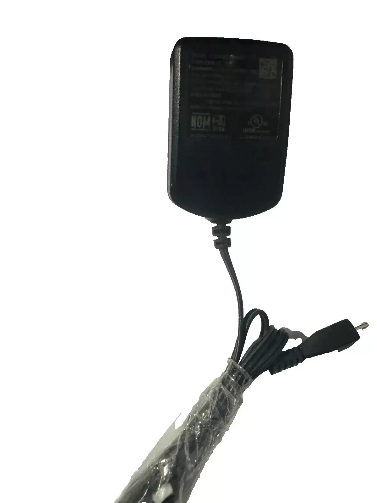 The charger includes one micro USB cable with a length of 38 inches and has a voltage of 5V/550mA. It is an original OEM travel charger provided by the manufacturer and comes with a California Prop 65 warning. The charger is lightweight and weighs only 1.5 oz. It has a width of 1.5 inches and a height of 2.25 inches.