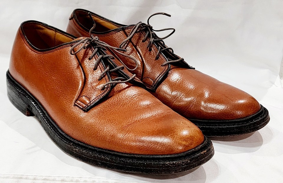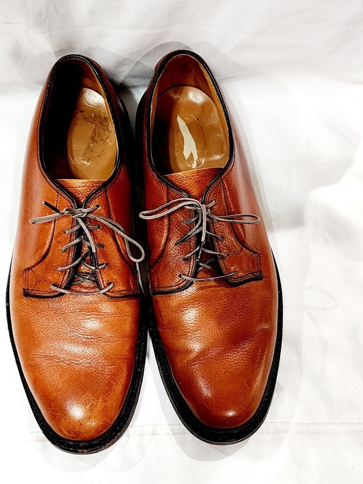1 Pair No Box By Vintage BROWN LEATHER Oxford Lace Up Dress Plain Toe Synchro Flex Men 9 Used! (Box #14)