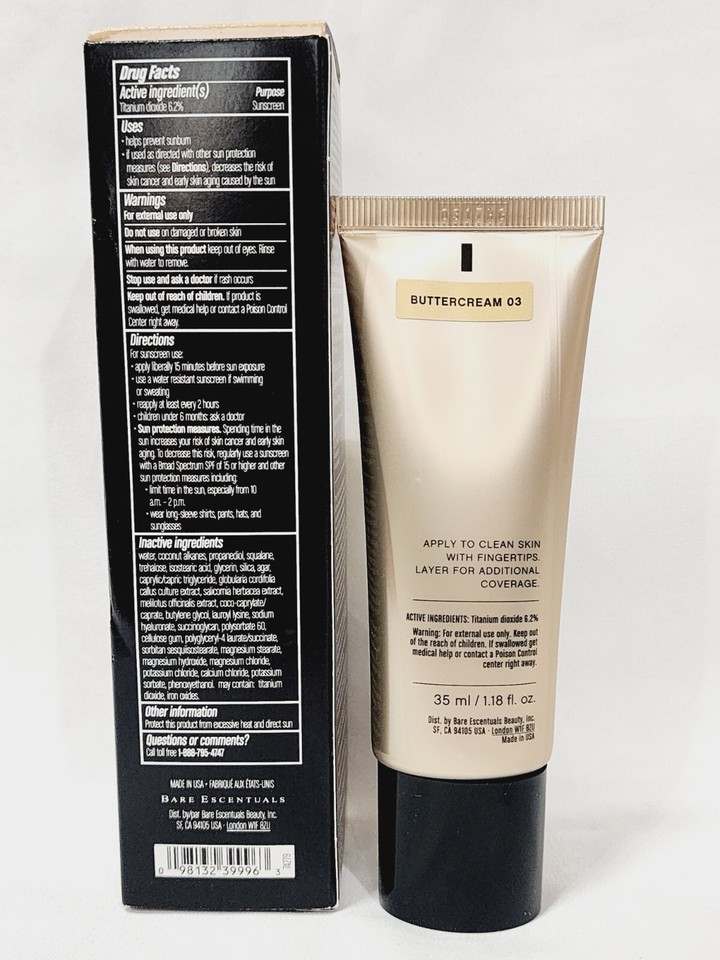 1 Brand New In Original Box Factory Sealed Full Size Tube by Bare Escentuals BareMinerals Complexion Rescue BUTTERCREAM 03 Tinted Hydrating Gel Cream Broad Spectrum SPF 30! Original Formula! Discontinued Hard to Find! 100% Authentic!