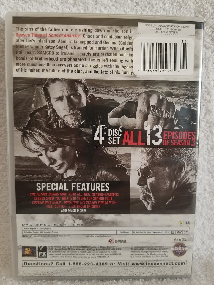 Sons of Anarchy: Season Three 3 (DVD, 2011, and similar items
