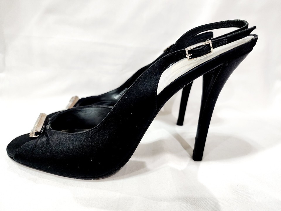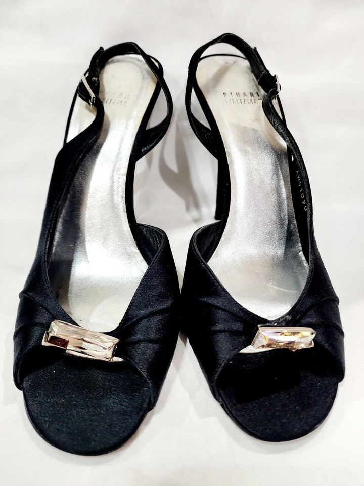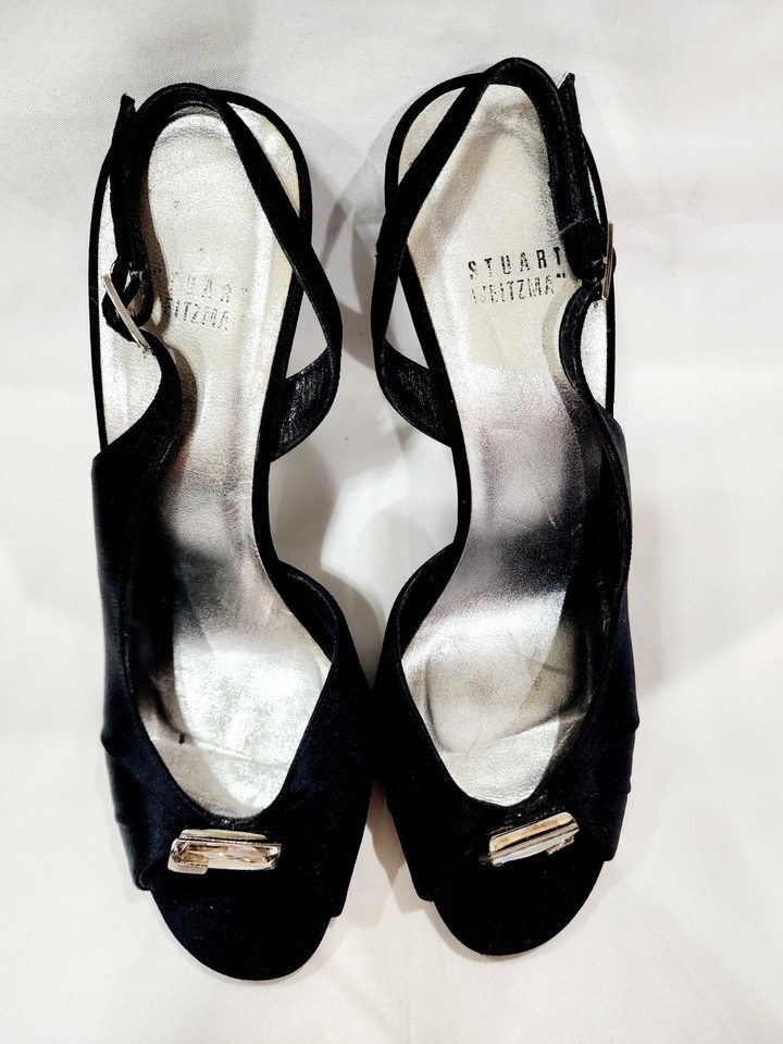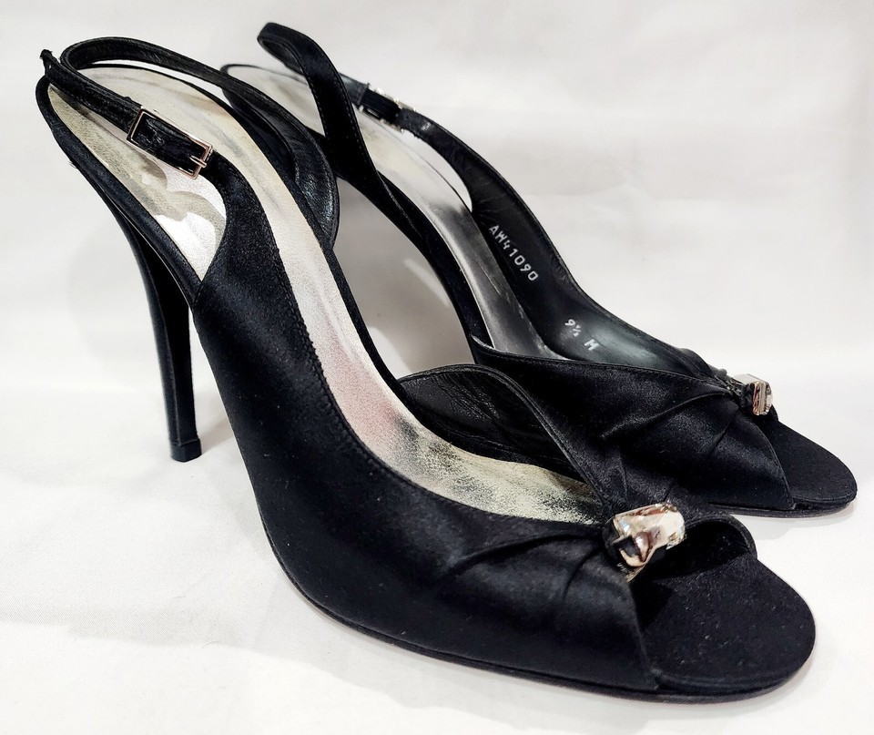 1 Used Pair No Box By Stuart Weitzman BLACK SILK Satin Stone/Crystal Slingback Heel Stiletto Pump 9.5 M Used! (Box #20)