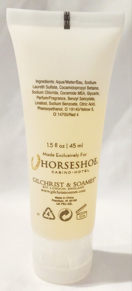 1 Brand New Unsealed Unboxed Travel Size Tube by Gilchrist Soames Est. London, England Made Exclusively for Horseshoe Casino Hotel HORSESHOE Shower Gel Gently Cleansing to Refresh Skin! Original Formula! Discontinued Hard to Find! 100% Authentic! RARE!
